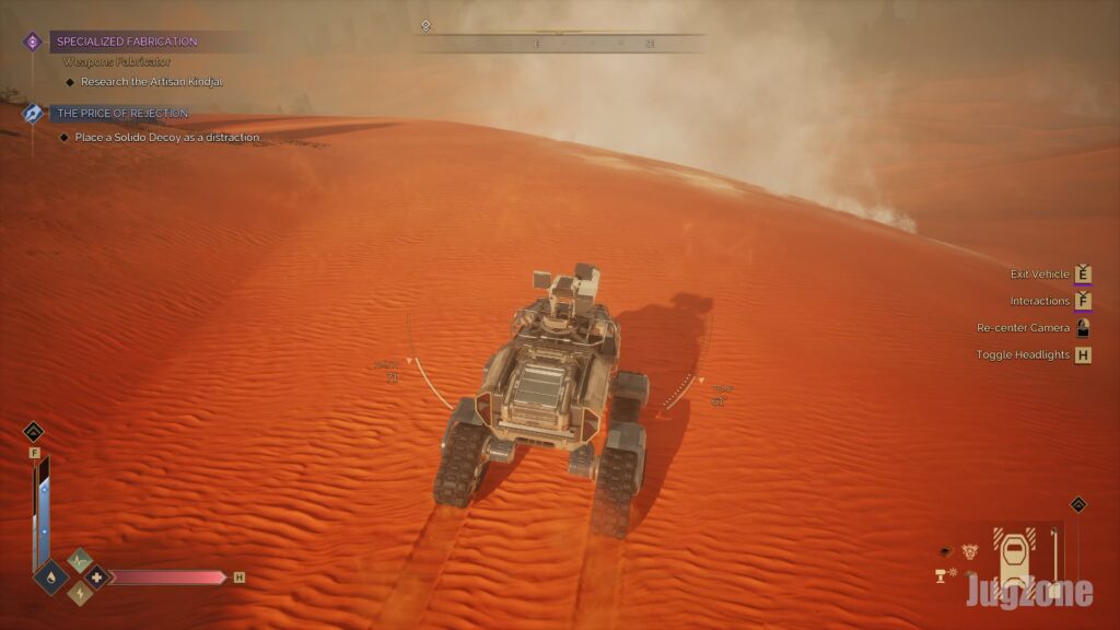 Tip: Pay close attention to the worm sign – the sound and visual cues of an incoming sandworm (the rumble in the ground or a warning indicator on your HUD). If you notice the worm’s presence, stop what you’re doing and get to solid ground immediately. The worm’s attack can come very fast once it homes in on you, so always have an escape route in mind (such as a rocky outcrop or your parked vehicle on firm ground).