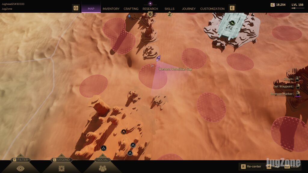 By now, you know that Vermillius Gap is the go-to region for Flour Sand. Within that region (and other deep desert areas), not all spots are equally dangerous. Some Flour Sand fields spawn in the middle of vast open dunes (very risky), while others spawn closer to solid ground or canyon edges (much safer). The trick is to find the sweet spots where you can gather without constantly looking over your shoulder for a worm. Here are some tips and examples: